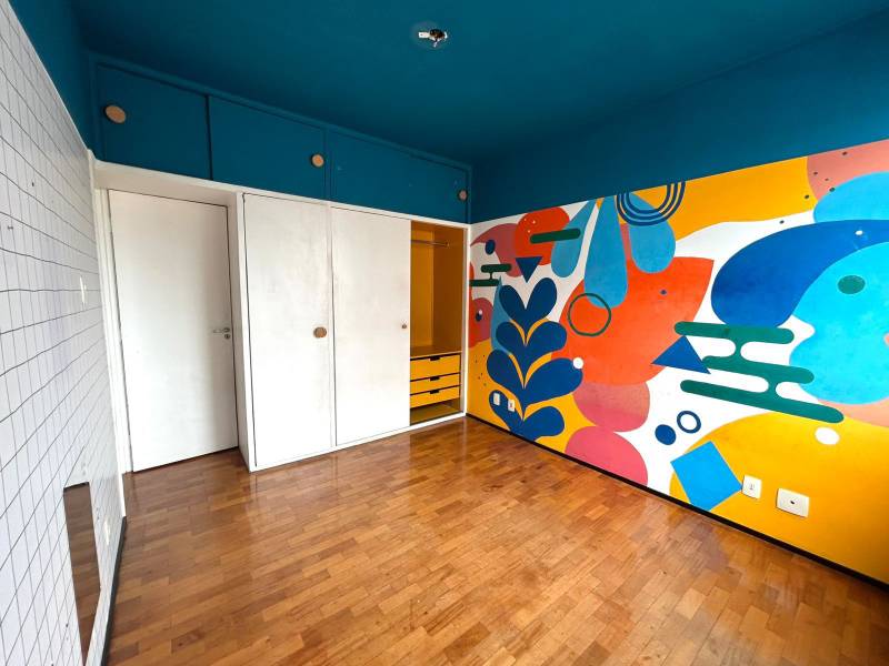 Sala ampla para 02 ambientes com piso em laminado de madeira, iluminação planejada, 03 quartos confortáveis com armários e piso em laminado de madeira, 02 banheiros revestidos, cozinha espaçosa com armários planejados, bancada e piso em granito, área de lavanderia independente